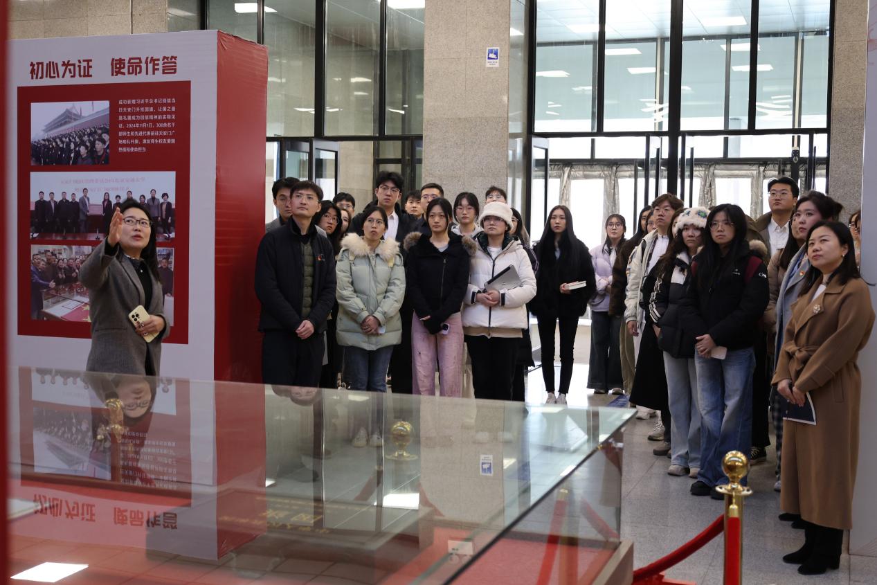 3月6日下午,艾米直播 组织学生党员集体参观了学校举办的“牢记嘱托、接续奋斗”习近平总书记重要回信一周年主题展览。学院党委书记秦思阳、本科及研究生辅导员和50余名学生党员一起参观展览,校党委宣传部韩榕老师受邀作专题讲解。