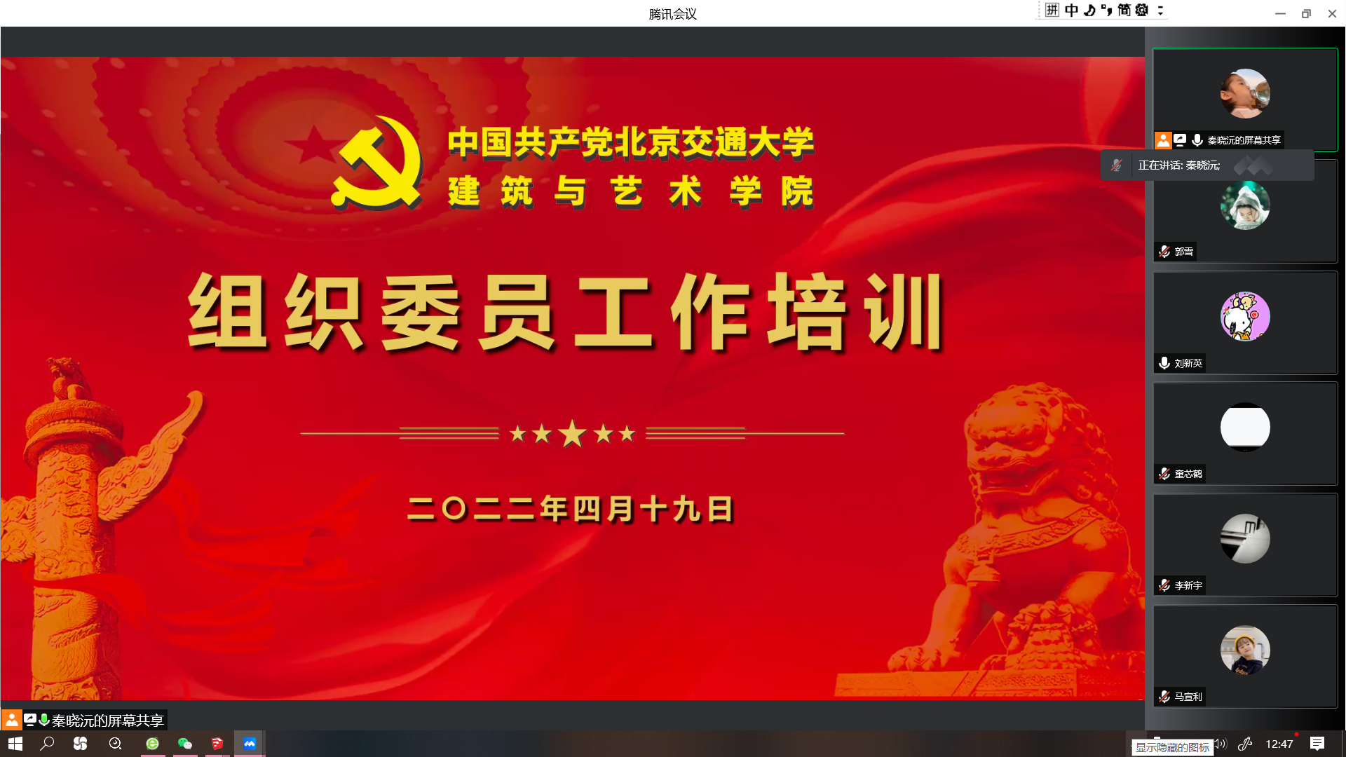 为了进一步加强和规范学院基层党建工作,4月19日中午,艾米直播 党委举行各党支部组织委员工作培训会。学院党委书记秦思阳,全体教职工党支部组织委员、部分学生党支部组织委员线下参加,其余学生党支部组织委员线上参加。会议由学院党委书记秦思阳主持。