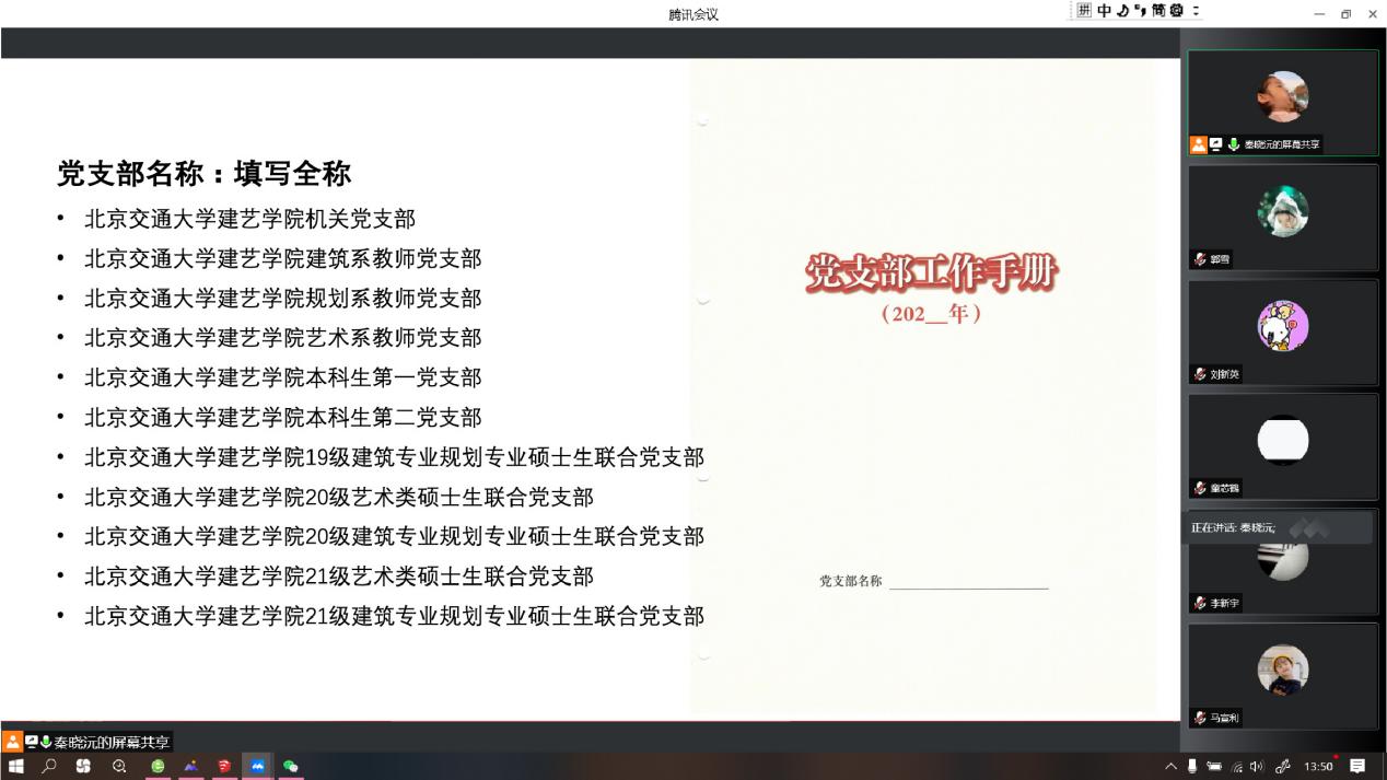 本科生第二党支部书记秦晓沅带领全体组织委员学习了《党支部工作手册》填写规范和注意事项,明确了《党支部工作手册》填写标准,并就党员E先锋系统、党费系统的具体使用方法及常见问题对组织委员进行了培训。