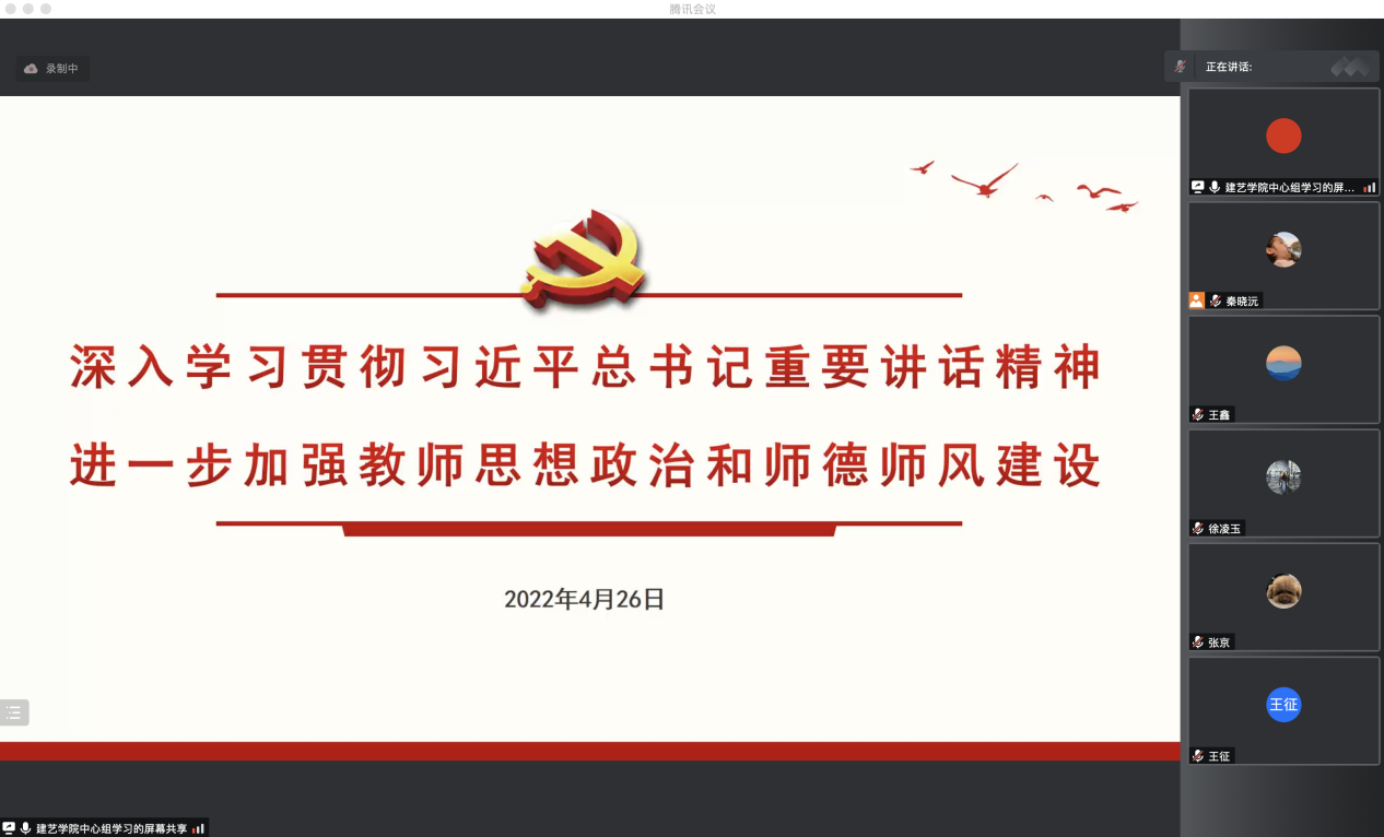 2022年4月27日,艾米直播 党委围绕“深入学习贯彻习近平总书记重要讲话精神,进一步加强教师思想政治和师德师风建设”主题,召开学院党委理论中心组学习扩大会议。会议由学院党委书记秦思阳主持,学院党委理论中心组机关人员现场参会,各系系主任、党支部书记线上参加会议。