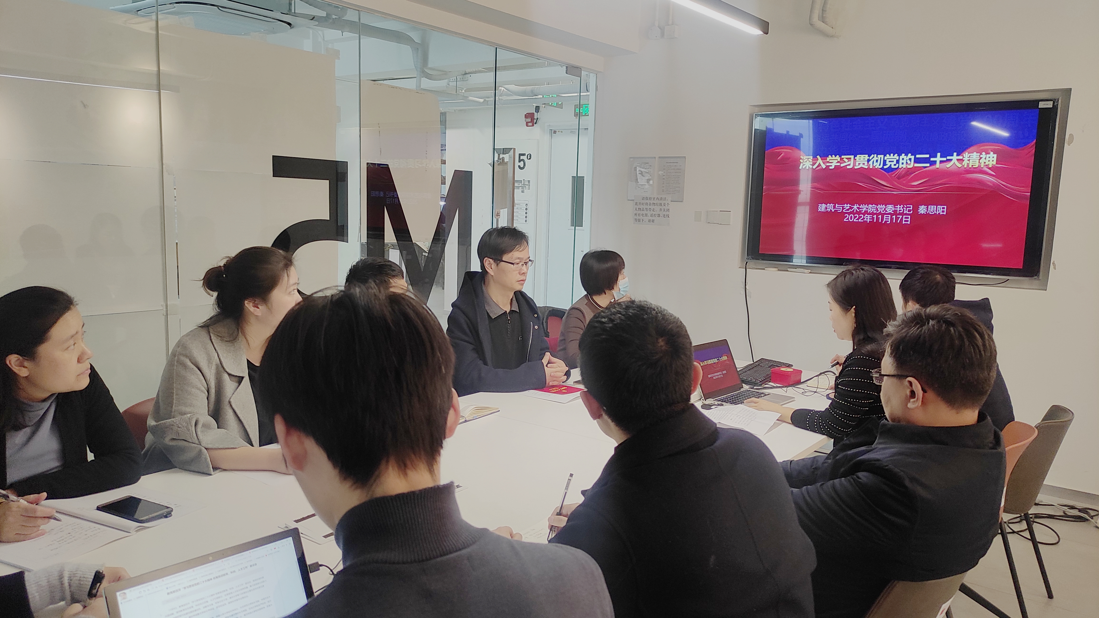 2022年11月17日,艾米直播 党委理论中心组专题学习党的二十大精神,会议由学院党委书记秦思阳主持。秦思阳传达了学校党委刚刚下发的《关于认真学习宣传贯彻党的二十大精神的通知》,强调指出:学习宣传贯彻党的二十大精神,是当前和今后一个时期的首要政治任务,全体中心组成员要带头学习,要确保学深学透、入脑入心,把学习党的二十大精神转化为全院师生奋进新征程、建功新时代的强大力量。