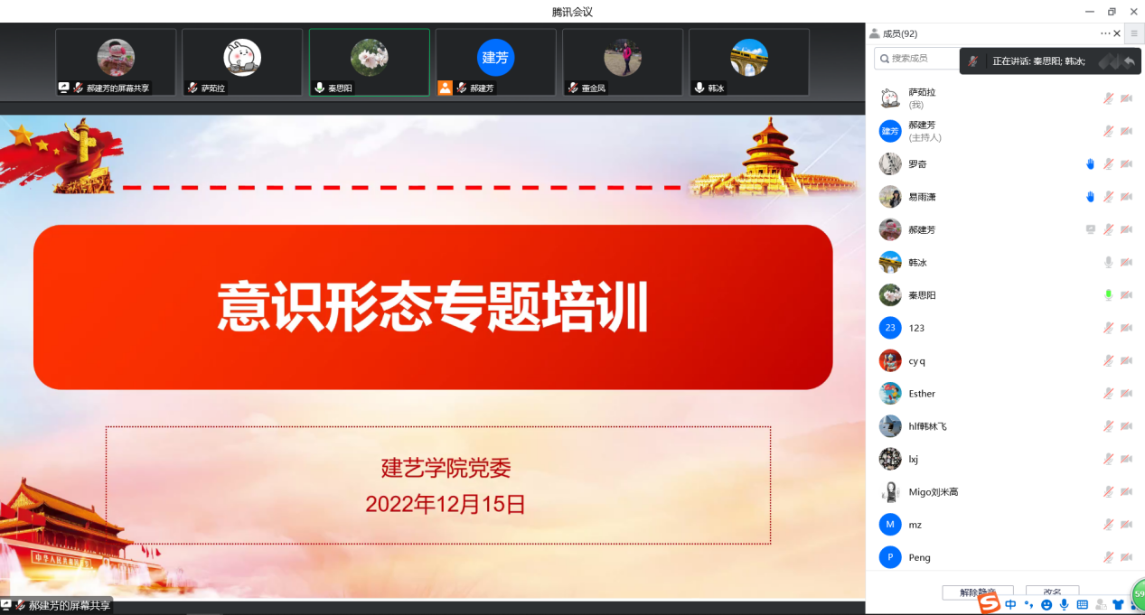 12月15日下午,艾米直播 召开线上全院教职工大会,学院党委书记秦思阳主持会议,全体教职工参加了会议。