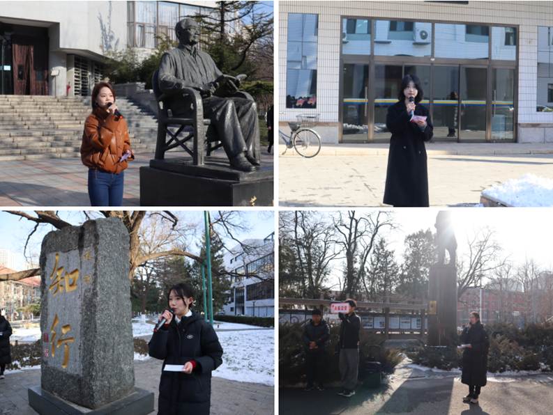在思源楼领袖关怀主题屏风处,讲解学生围绕中肯友谊与“一带一路”合作中的青春故事,阐释新时代青年应有的使命与担当;图书馆茅以升雕像前,大家聆听“中国现代桥梁之父”的生平事迹,感受大国工匠精神的深刻内涵;科学会堂郑振铎雕像旁,师生共同回顾这位文化巨匠践行知行合一、胸怀家国的人生历程,进一步坚定文化自信知行校训碑前,同学们共同追溯校训的历史渊源与现实意义;天佑会堂詹天佑雕像处,师生回顾我国交通事业的发展历程,展望交大人实现交通强国的梦想与担当