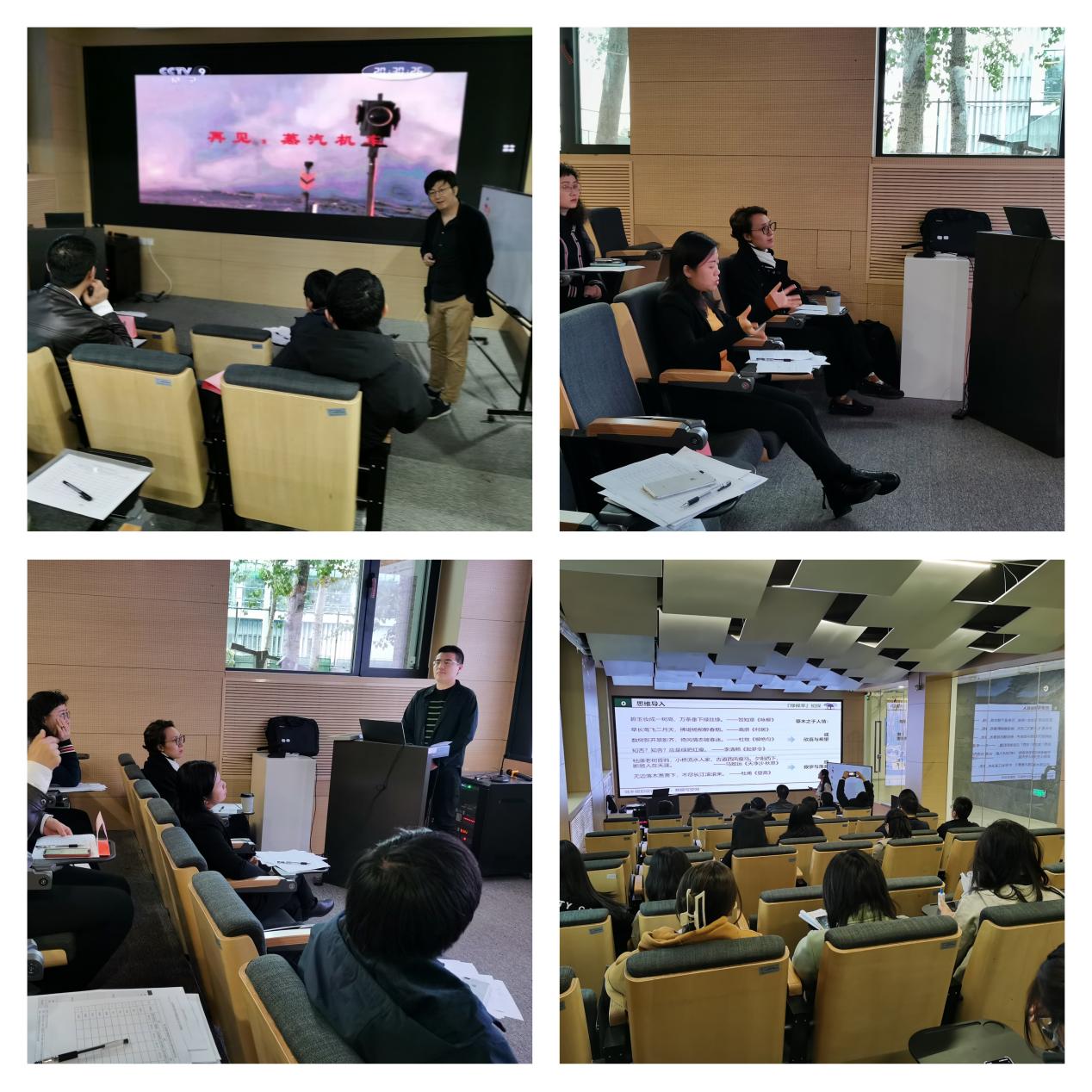 参赛的老师轮流进行现场模拟授课展示,各位老师的讲课精彩纷呈,和现场的评委和同学们展开互动,讲课各具特色,风格多变,充分展示了艾米直播 青年教师较高的教学能力水平。评委们针对每位老师的教学课程思政设计、教案及课件设计、教学组织、教学效果等方面进行了认真点评,提出了专业的指导意见。
