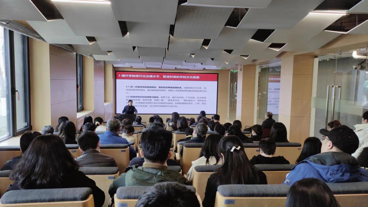 院长韩冰从八个方面就学院2023年工作计划进行了部署:一是坚持和加强党的全面领导,推动党建和思想政治工作提质增效;二是不断推进学生工作内涵式发展,构建独具建艺精神和特色的学生工作体系;三是提升学院现代化治理水平,营造和谐的学院文化氛围;四是进一步凝练学科特色,逐步形成服务国家战略及智慧交通的学科交融体系;五是深化人才培养机制改革,提升专业建设水平;六是围绕学科特色开展有组织科研,全面提升科研质量;七是提升国际化教育水平,推进国际合作交流正常化;八是围绕国家战略,发挥校友资源优势,提升社会服务能力。