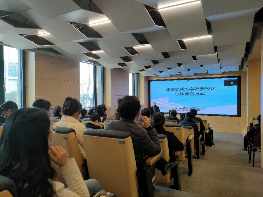 方案介绍过后,郑方教授、佘高红副院长、蒙晓英教授与在场师生充分交流,和老师、同学们分享心得,共同为服务新校区规划建设努力。佘高红回顾了多年以来学校寻求新校区的发展历程,提出要特别珍惜建设雄安新校区的宝贵机遇。蒙小英介绍了雄安新校区的景观规划系统。在座的老师和同学们也分别从校园规划的绿化、防灾、交通、校城融通等方面提出问题和专业建议。