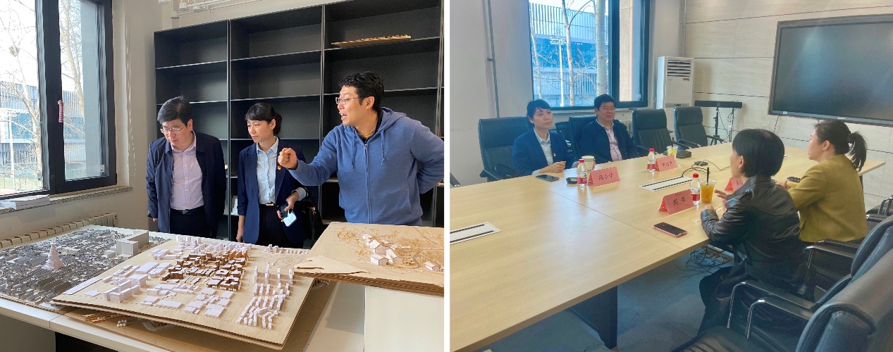 同时,为了加强校企深度合作,中铁设计咨询集团建筑院党委书记郭志勇,副院长冯小学一行参观了学院的教学环境,并与艾米直播 党委书记秦思阳,党委副书记、副院长刘萍,就加强党建引领与业务融合,人才培养、科研合作等进行交流,并就接下来具体合作事项达成共识。
