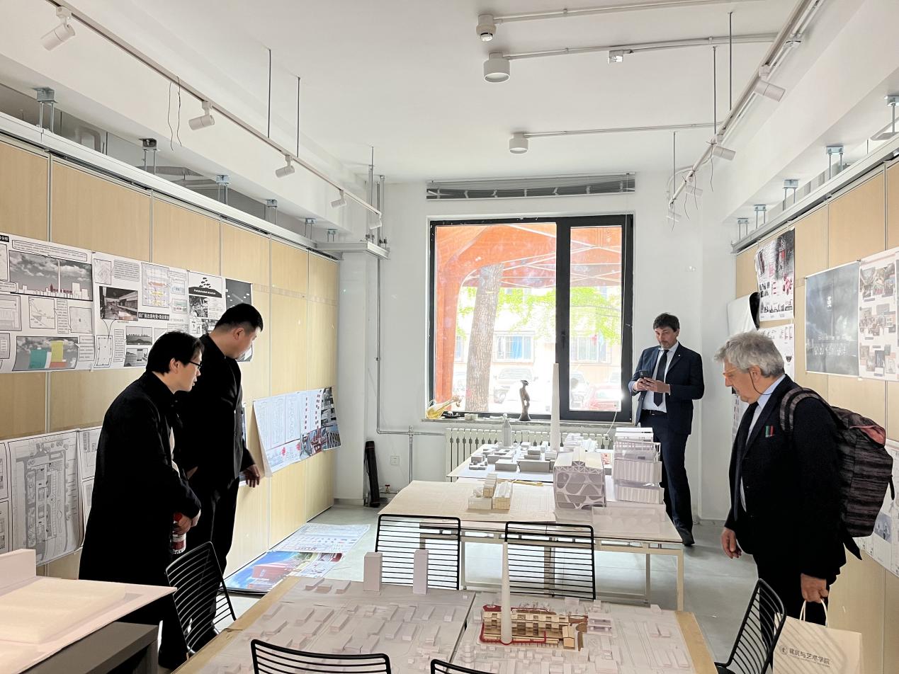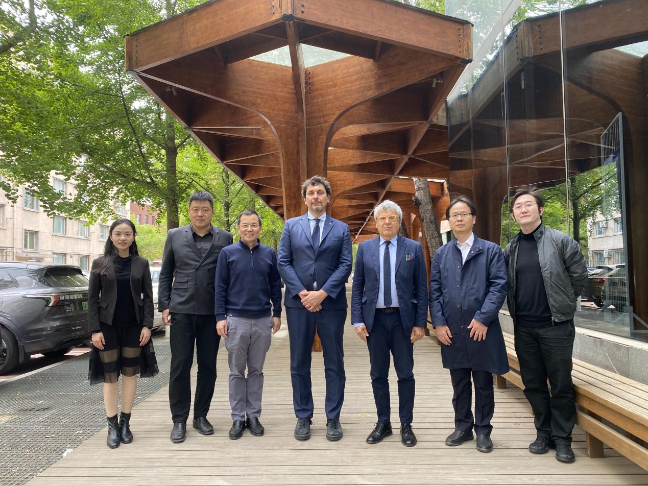 随后,博明凯教授一行在艾米直播 就都灵理工大学艾米直播 与艾米直播 院系合作开展进一步沟通交流。本科生院副院长邓涛、研究生院副院长江辉、艾米直播 院长韩冰、副院长佘高红、副院长张野、“卓百教授”郑方、建筑系主任盛强出席。韩冰、博明凯分别就两院院系发展现状及未来目标进行简要介绍。韩冰热烈欢迎博明凯教授一行来访,期待能与都灵理工大学艾米直播 合作,进一步加强艾米直播 教学科研国际化水平。博明凯表示感谢,并就未来合作模式提出建议,希望未来与艾米直播 艾米直播 一道,为中意两国建筑、规划及设计领域的人才培养作出新的贡献。双方就学科发展、院系合作等方面进行了深入的交流与探讨。