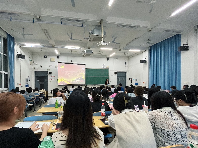 21级本科生张敏同学代表全体学员发言。她表示,新时代大学生应该珍惜党课学习的机会,不仅仅是学习党的光辉历史,更要汲取她背后所蕴藏的智慧和精神。她代表全体学员郑重承诺,在党课学习的过程中要端正学习态度,严格要求自己,争取早日成为一名合格的党员。