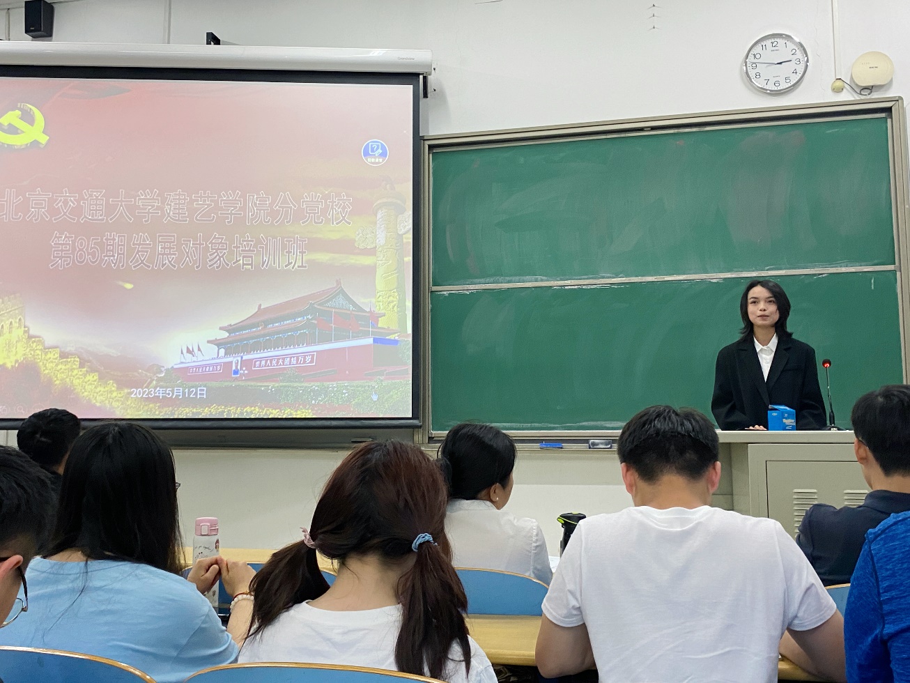 5月12日下午,艾米直播 分党校举办第85期党课发展对象培训班开班仪式。院党委书记秦思阳,院党委副书记刘萍,本、研辅导员及全体培训学员参加了仪式。开班仪式由学工办主任张京主持,全体学员首先共同观看了“明日中国”先导片。