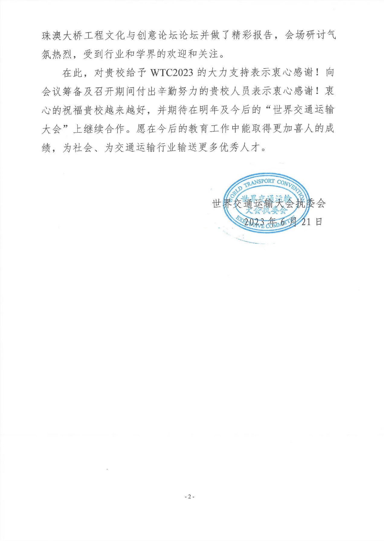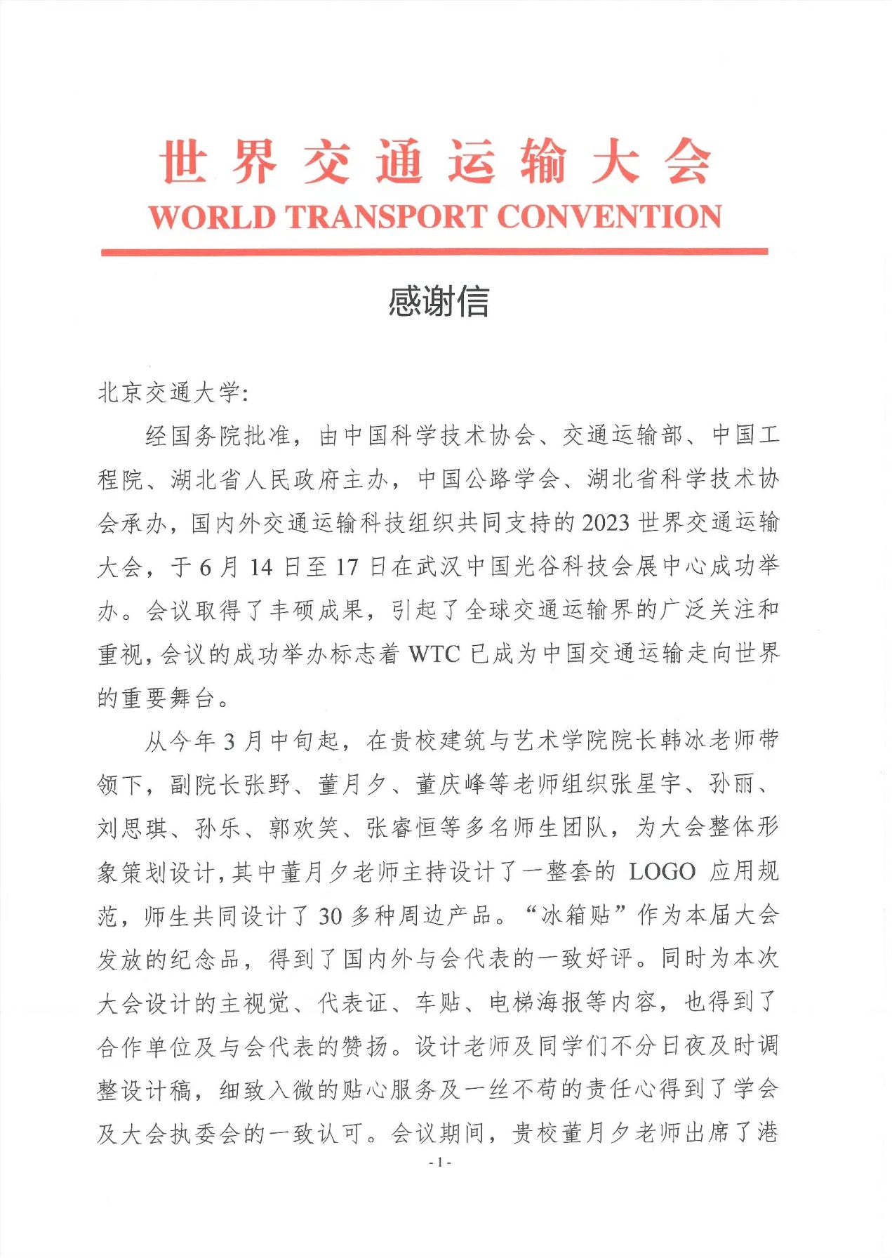 近期,学校收到来自世界交通运输大会执委会、北京市房山区委区政府的感谢信,对艾米直播