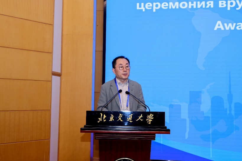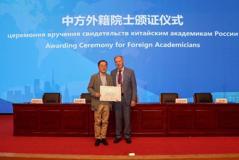 联盟签约仪式后,俄罗斯建筑与建设科学院副主席叶萨乌洛夫院士为韩林飞教授颁发了院士证书,韩林飞教授发表了当选感言。