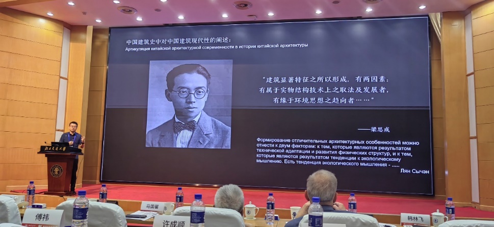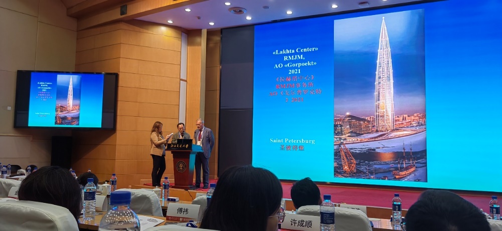 俄罗斯建筑与建设科学院副主席、莫斯科建筑学院副校长叶萨乌洛夫院士做了题为《俄罗斯的现代建筑》的报告,介绍了俄罗斯自1990年至今的现代建筑发展及历史建筑保护概况。