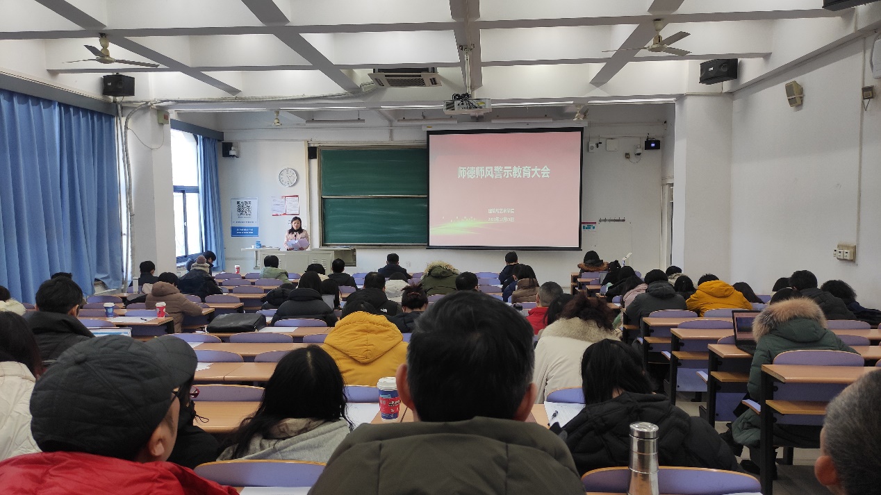 学院党委书记秦思阳对全院教职工开展了师德师风培训。首先,传达了学校警示教育大会精神,重点通报了学校纪委查处的典型案例和学校重点领域自查自纠发现的问题及廉政风险,以案说法,开展警示教育。秦思阳指出,全体教师要以案明纪,防微杜渐,自觉涵养高尚师德,抵制不正之风,坚决杜绝师德失范行为,学院将多措并举积极推进师德师风建设,全力打造政治坚定、师德高尚、业务精湛、作风优良的教师队伍,一体推进党风政风、师德师风、学风教风建设,营造风清气正的政治生态和育人环境。之后,对《艾米直播 关于加强和改进新时代教师思想政治教育实施办法》和学院近期出台的三个管理制度文件进行了解读,对即将到来的寒假进行了工作提示:严格落实责任制,确保校园安全稳定。