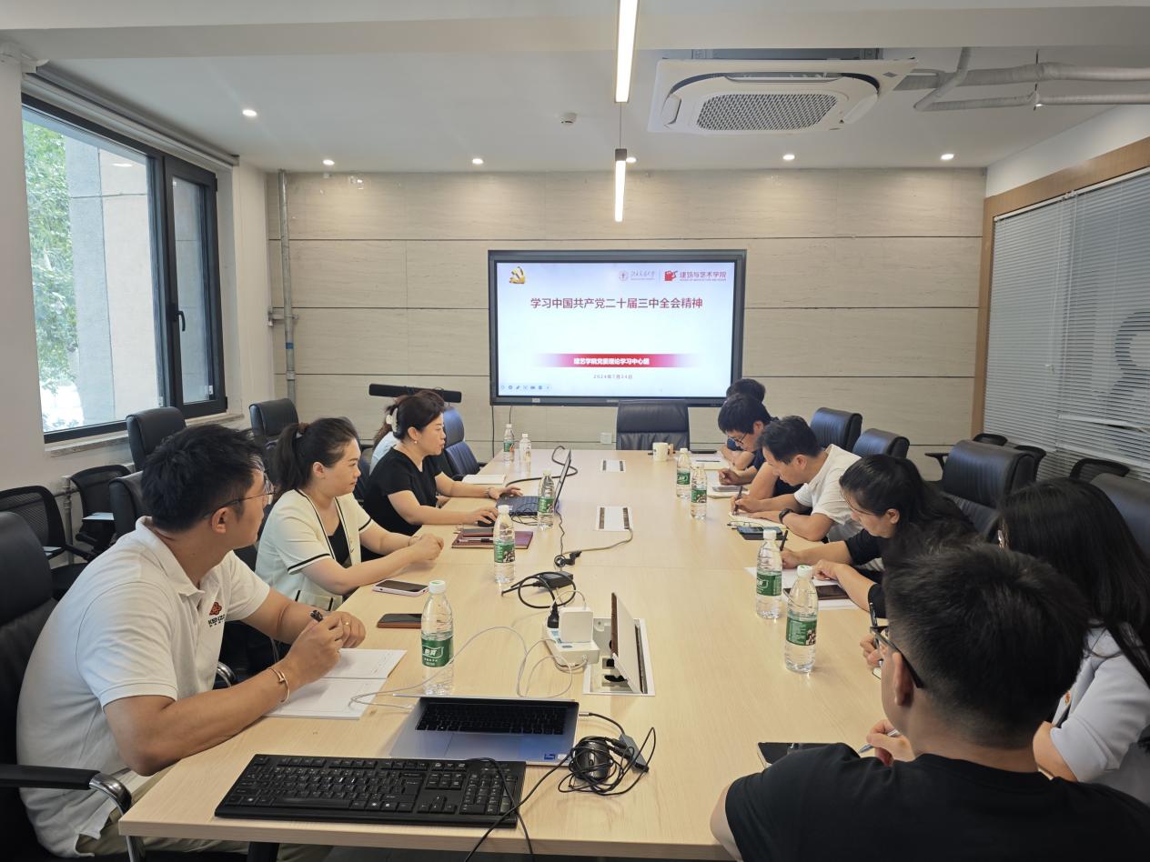 7月24日上午,艾米直播 党委理论中心组专题学习中国共产党二十届三中全会精神,中心组成员和学院机关党支部党员参加学习。