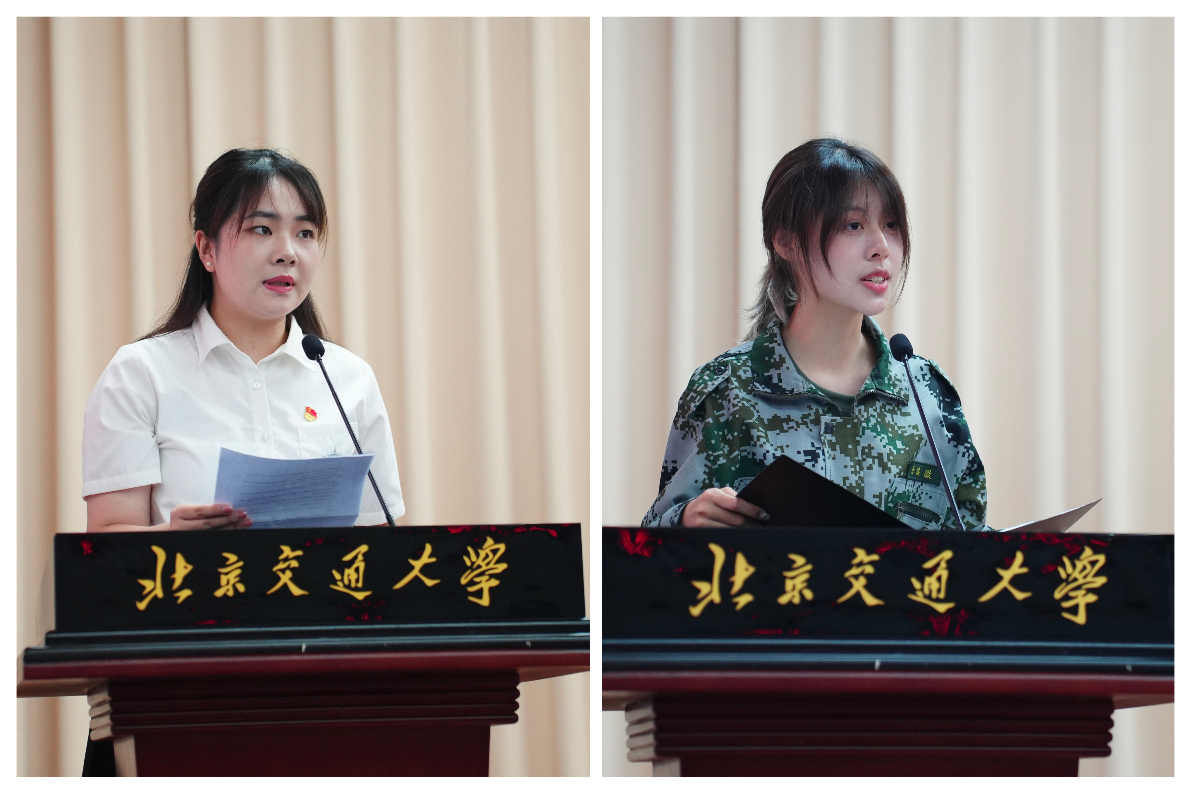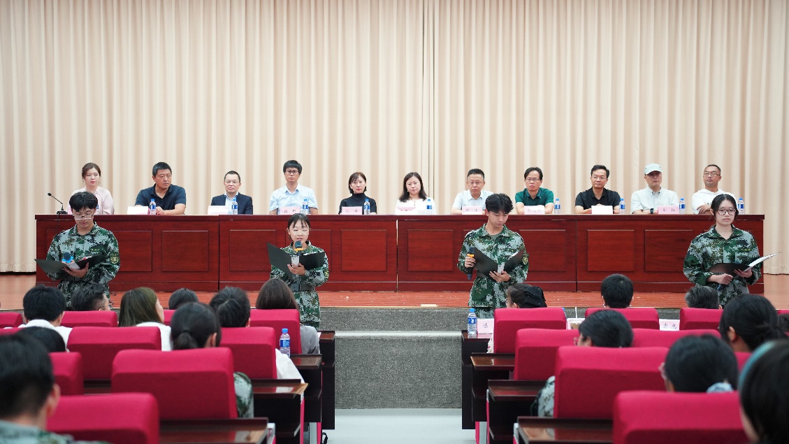 建规2401班拓心月、建规2402班王煜博、建规2403班王巍、设计2403班宋初阳作为2024级新生代表带来朗诵《青春扬帆正当时,争做时代追梦人》,表达了新生在人生新阶段的坚定信念和勇敢追梦的决心,充分展现了新一代建艺人的蓬勃生机与无限活力。