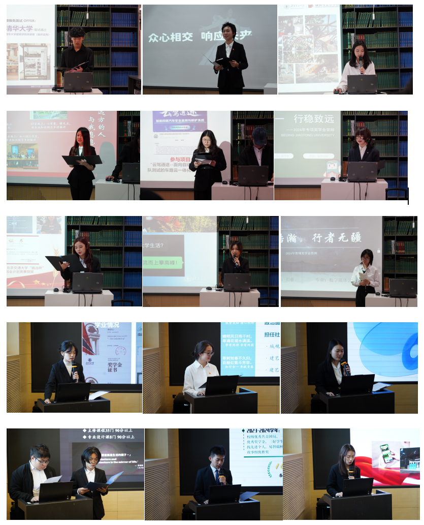 榜样领航,青春筑梦。10月11日,11月5日,艾米直播 在建艺楼一层报告厅举行2023-2024学年国家奖学金和智瑾专项奖学金展示会。学院党委副书记刘萍,副院长张野,建筑系主任盛强,城乡规划系副主任张纯,设计系副主任杨梦婉,教学科科长彭烜、学工办主任张京,教师代表李经纬、易雨潇,2024级学生代表担任答辩会评委。