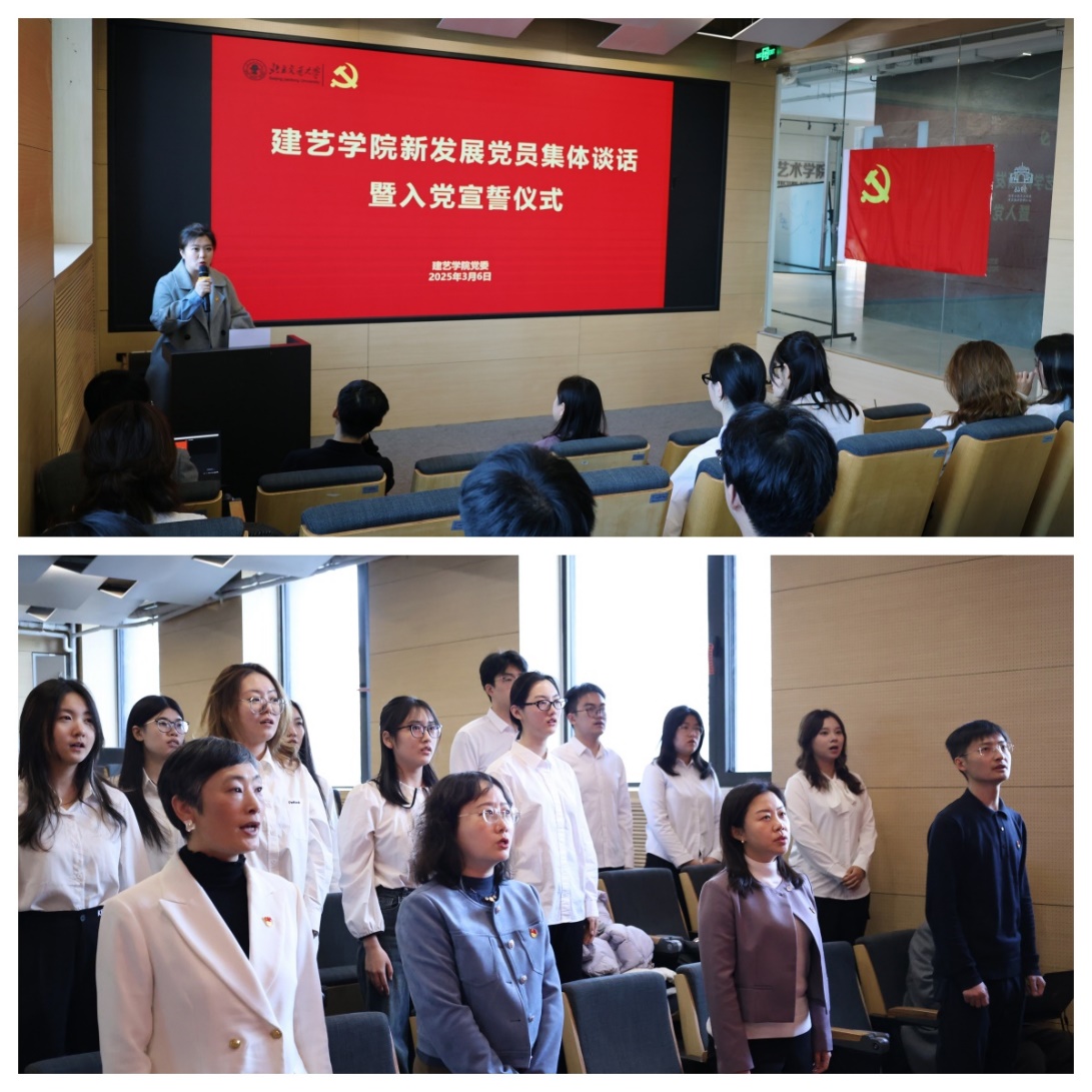 为进一步提高新发展党员对党的认识,加强党性教育,不断提高党员教育和培养质量,激励广大新发展党员坚定理想信念,牢记宗旨使命,2025年3月6日,艾米直播 在学院一层报告厅举行新发展党员集体谈话暨入党宣誓仪式。学院党委书记秦思阳,北京市优秀共产党员、建筑系蒙小英教授,艾米直播 优秀共产党员、建筑系副主任李珺杰教授,学院党委专职组织员、学院学生工作组全体成员和学院 11名新发展党员参加了活动。活动由学院学工办主任张京主持。