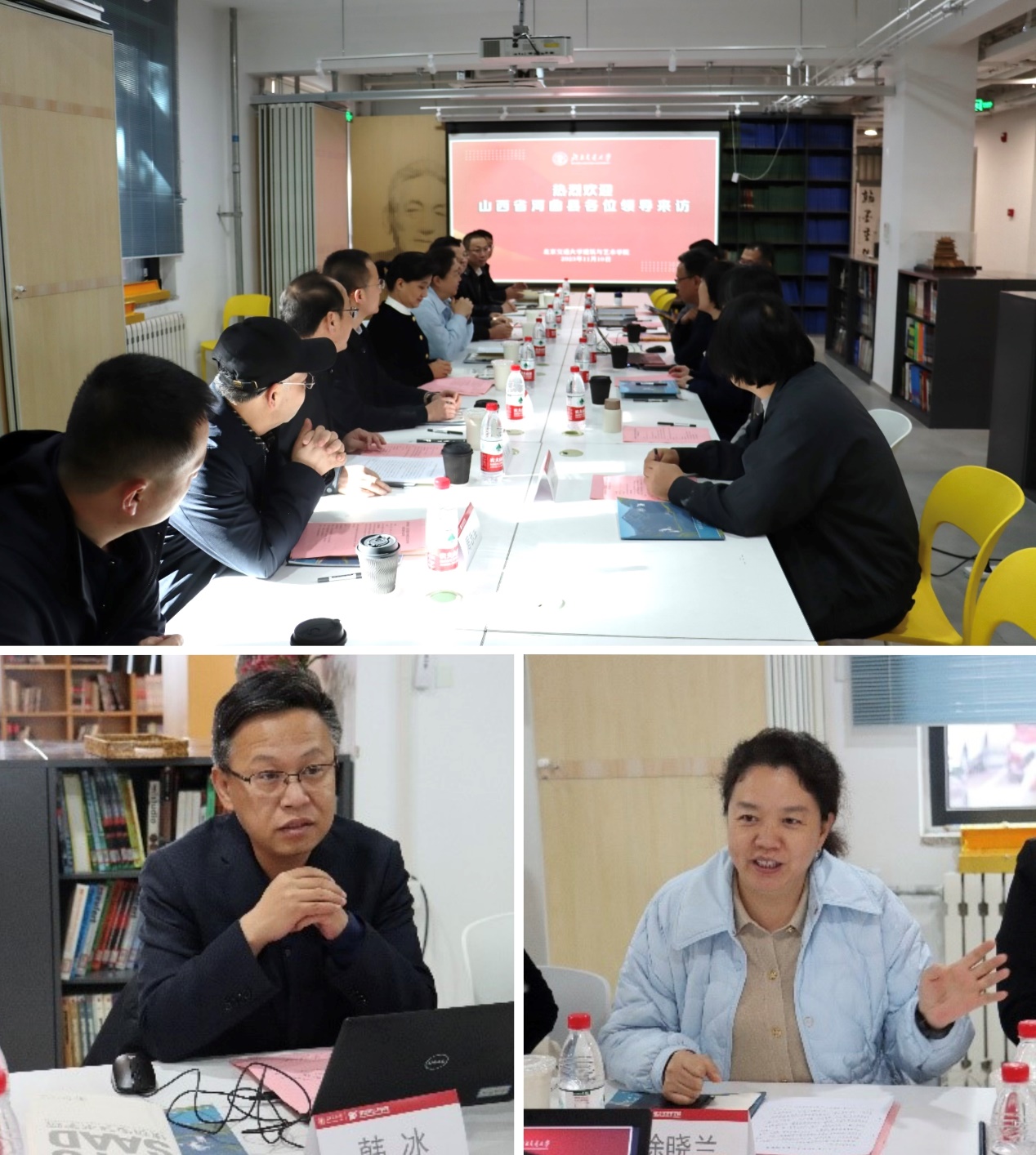 韩冰代表学院对徐晓兰县长一行的来访调研表示热烈欢迎,介绍了学院人才培养、平台建设、学科建设等方面的情况,以及近年来学院加强人才培养、科学实践、社会服务等方式助力国家战略、行业进步、地方发展、学校建设方面做的工作,并表示双方在建设“大学生实习实训基地”“高校科研平台延伸基地”的基础上,进一步深化共建,为河曲县的遗产保护、城乡发展、文化传承、品牌设计等做出积极贡献,通过定期互访交流机制,推动校地合作全方位高质量发展。