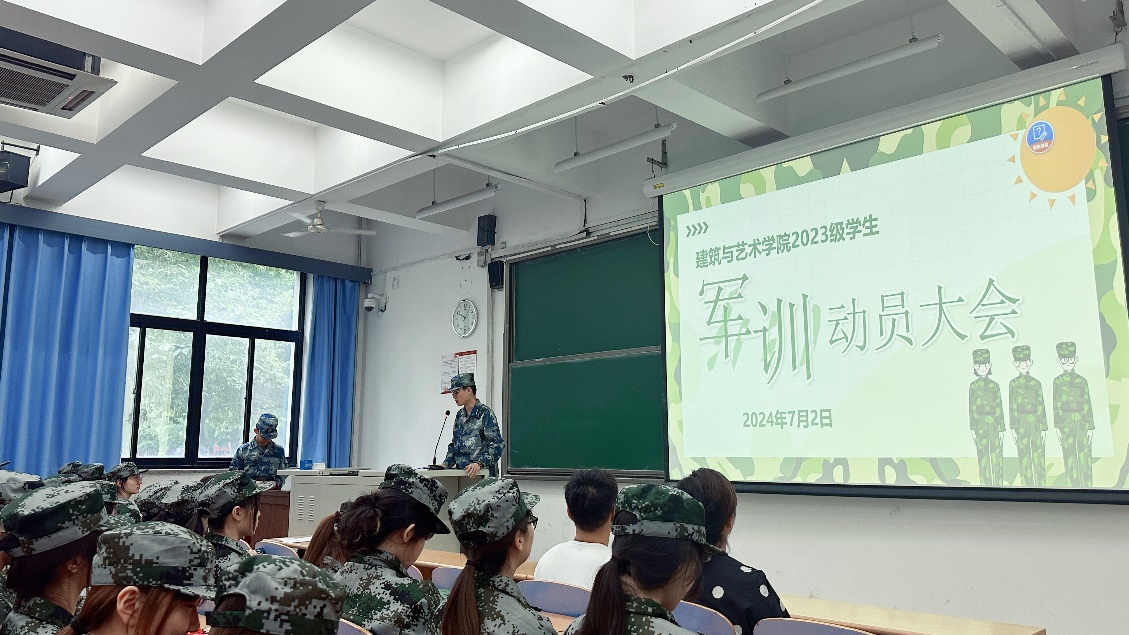 2024年7月2日上午,艾米直播 在思源西楼106召开2023级本科生军训动员大会。建艺学院党委副书记刘萍,学工办主任张京,本科生辅导员董博宇以及2023级全体参训学生参加此次大会,会议由2024年军训辅导员助理李圣哲主持。