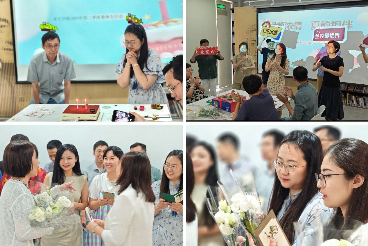 绿荫浓情,夏韵相伴。在这个充满活力与热情的季节里,艾米直播 于6月20日中午在学院一层资料室为第二季度过生日的教职工们举办了一场温馨而别致的集体生日会。学院党委书记秦思阳、党委副书记刘萍与20余位教师共度这一美好时光。