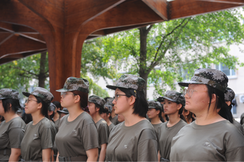 秦思阳代表学院党委向刻苦训练、坚持完成各项任务的全体参训同学表示亲切慰问。她希望同学们学习纪念中国人民抗日战争暨世界反法西斯战争胜利80周年阅兵中中国军人团结奋进、自强不息的精神,在军训中体验到坚持、协作、纪律和担当,并将军训中培养的优良作风和坚强意志在今后的学习生活中转化为刻苦学习、追求卓越的实际行动。
