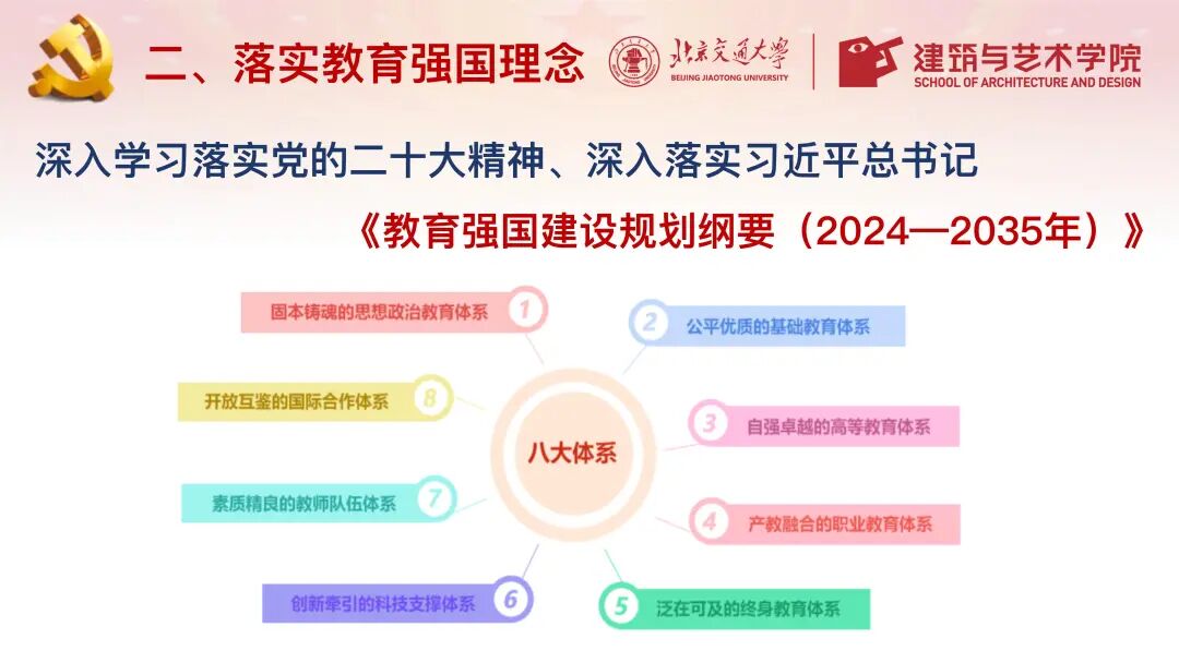 设计系教师党支部以党建引领为核心动能,以《教育强国建设规划纲要》为行动指南,在固本铸魂、科教自强、创新驱动之路上奋发前行!