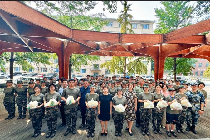 2025年9月4日上午,艾米直播 在伞亭举行2025级学生军训慰问活动。艾米直播 党委书记秦思阳,学工办主任张京,2025级本科生班主任万博,陈鹭,姚远,军训十二营带训教导员李昊霖、孙冬爱,本科生辅导员李圣哲在建艺楼前慰问军训师生。