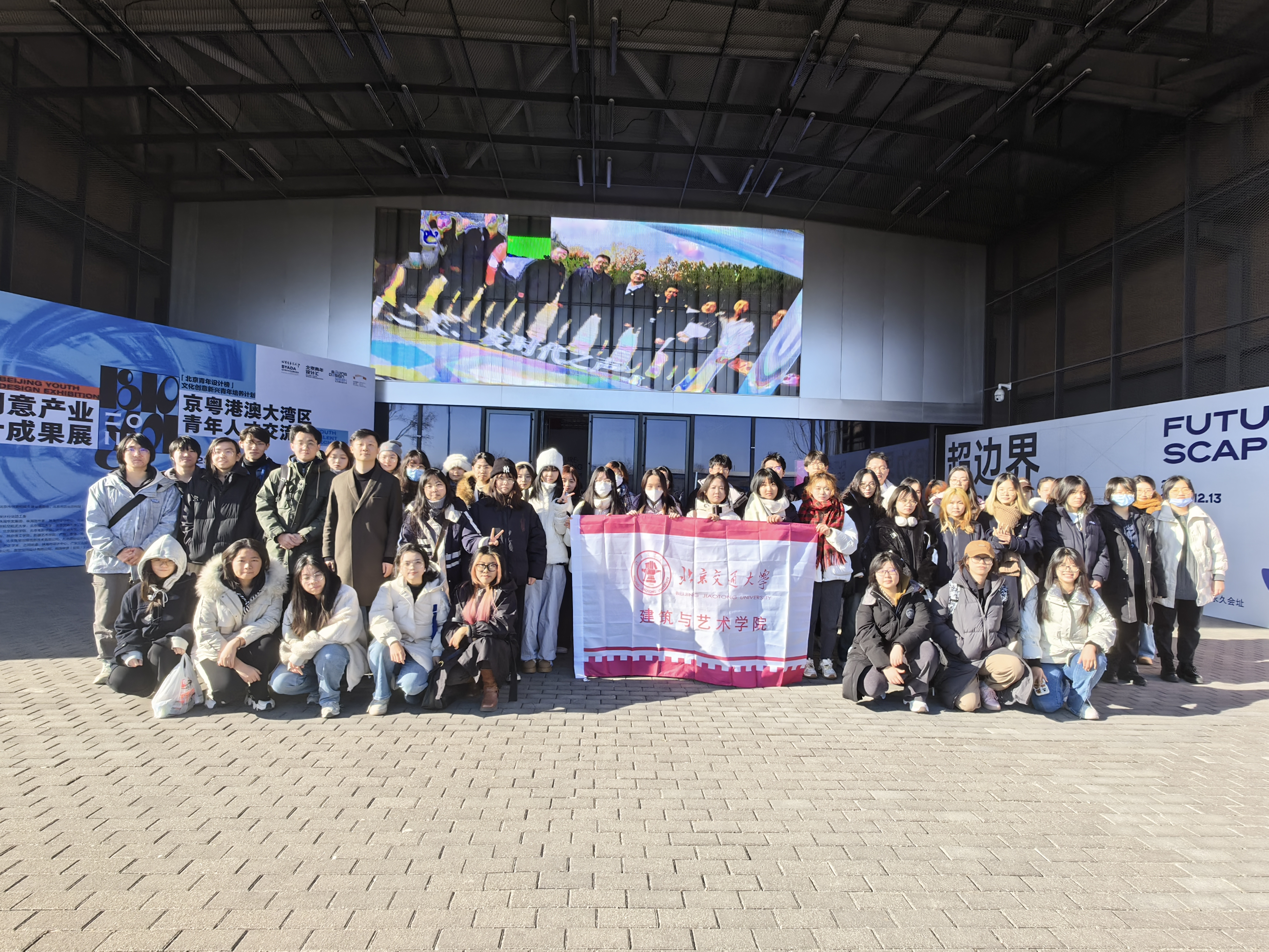 2023年12月2日,粤港澳大湾区青年设计人才交流会暨北京创意产业设计成果展在张家湾·北京国际设计周永久会址拉开帷幕。受北京市朝阳区艺术设计行业团工委邀请,艾米直播 视觉传达设计专业教师董月夕及21、22、23级48名本科生前往会址交流学习。